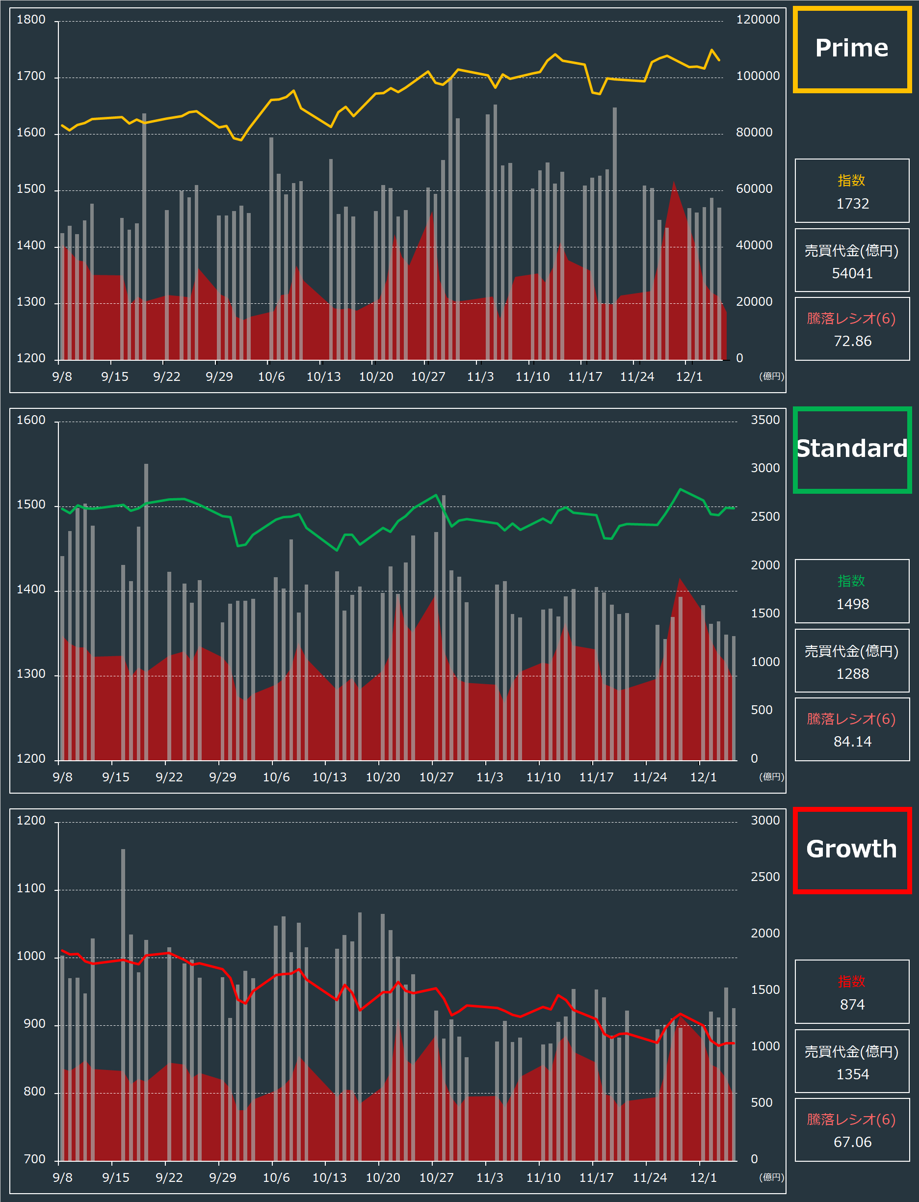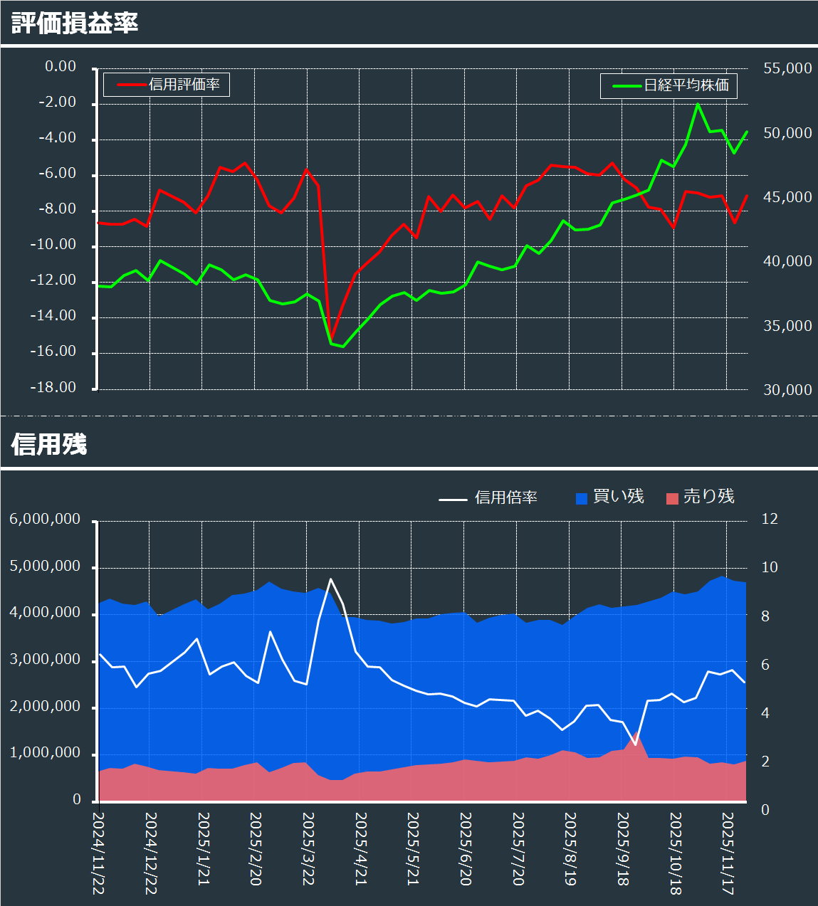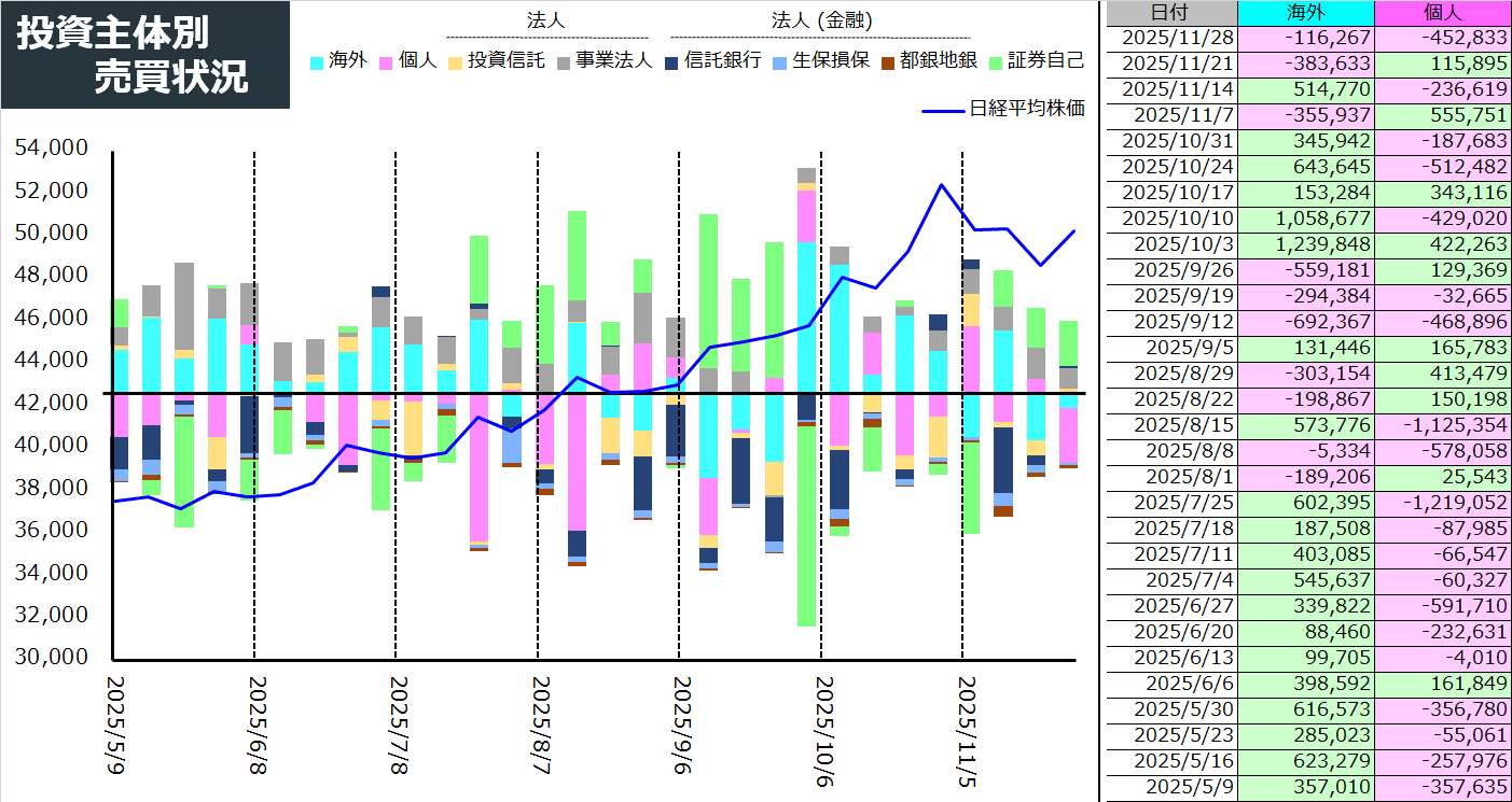 株式投資2021.10.11 2025.12.05 integral-777 本日の振り返り 更新日:2025-12-05_22:24:49 日経平均の概観・日経平均とTOPIX・市場区分比較・売買代金と騰落レシオ・投資主体別の売買状況・業種別RSI・業種別空売り比率・評価損益率 信用残 コメントを残す コメントをキャンセルメールアドレスが公開されることはありません。 ※ が付いている欄は必須項目ですコメント ※ 名前 メール サイト Δ